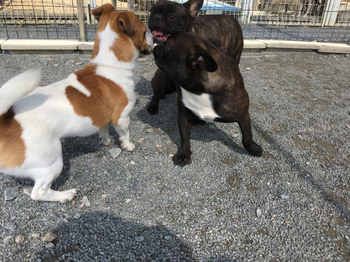 「クッキー」は他の犬とあまり遊んだことがないという話だったので、発情が来ていない若い女の子、遊んでくれそうの2匹を連れきました。